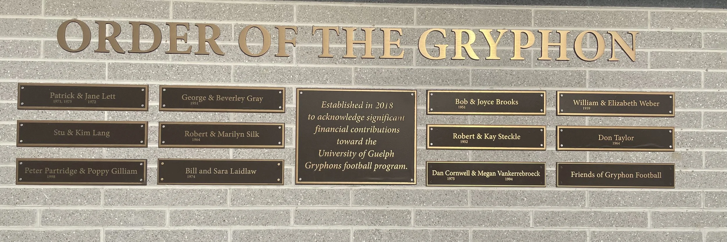 The Order of the Gryphon was established in 2018 to acknowledge significant financial contributions toward the University of Guelph Gryphons football program.